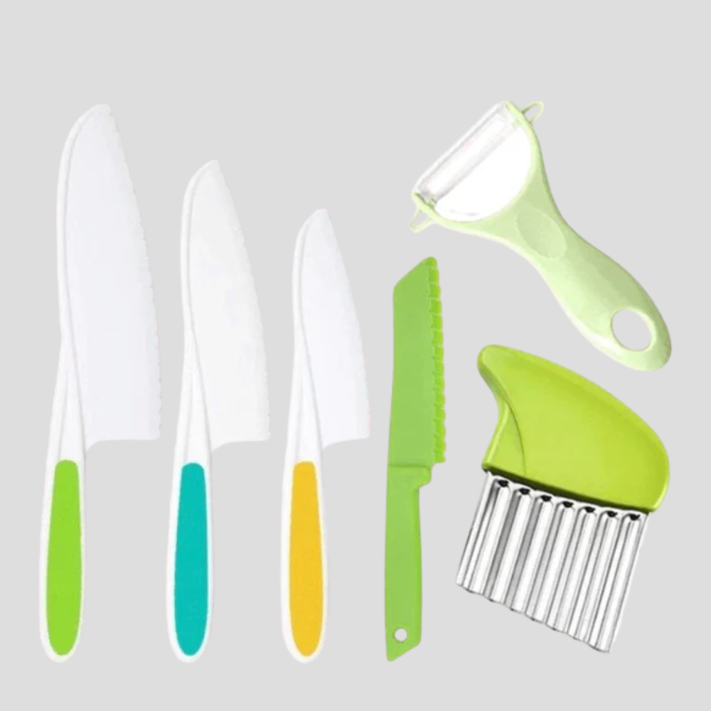 Een speelse maar praktische startersset waarmee kinderen hun kookvaardigheden kunnen ontwikkelen terwijl ze veilig en actief in de keuken zijn.