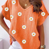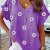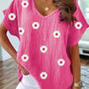 Ainara – Casual V-Hals T-Shirt met 3D Bloemenprint