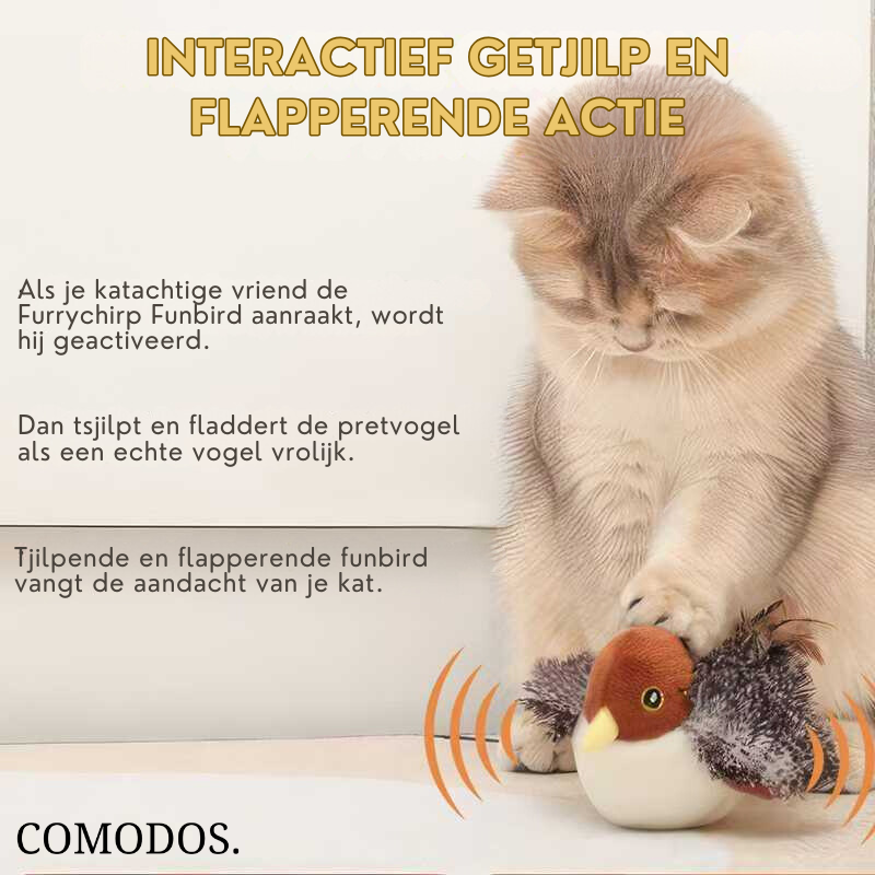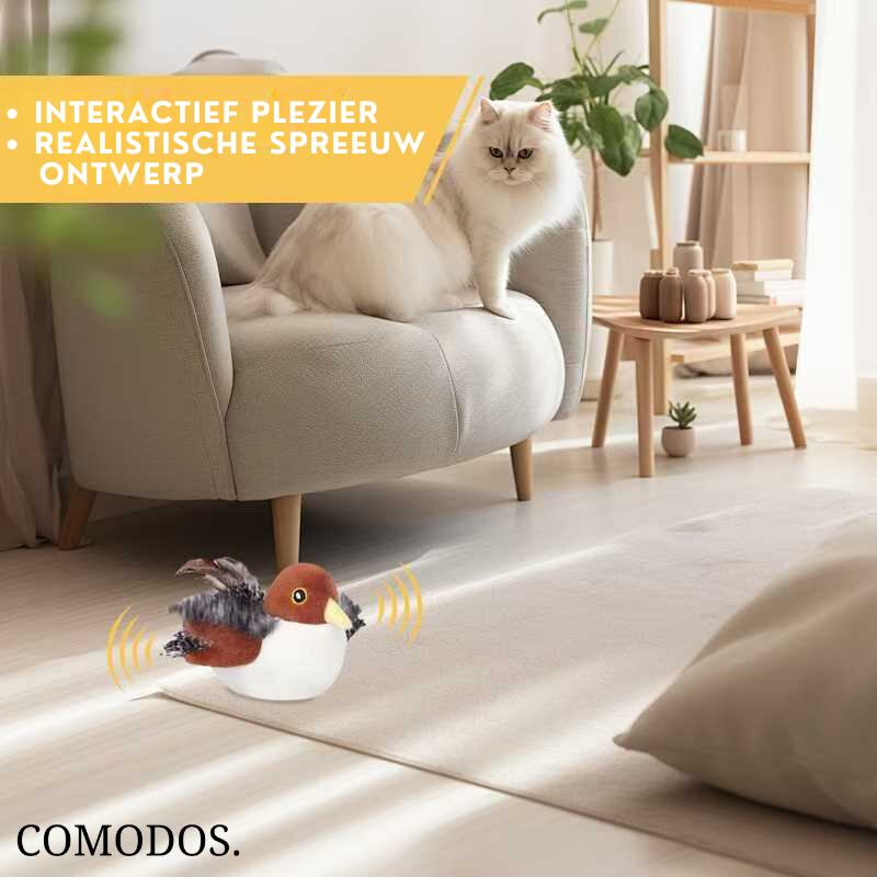 Niet alleen lijkt de Chirp & Chase™ Vogel Speelgoed op een echte mus, maar hij gedraagt zich ook als een! Zijn vleugels fladderen en hij tjilpt net als een vogel, waardoor de natuurlijke jachtinstincten van je kat worden geactiveerd. Deze dynamische interactie zorgt voor urenlang plezier, waardoor je kat zowel mentaal als fysiek gestimuleerd blijft.