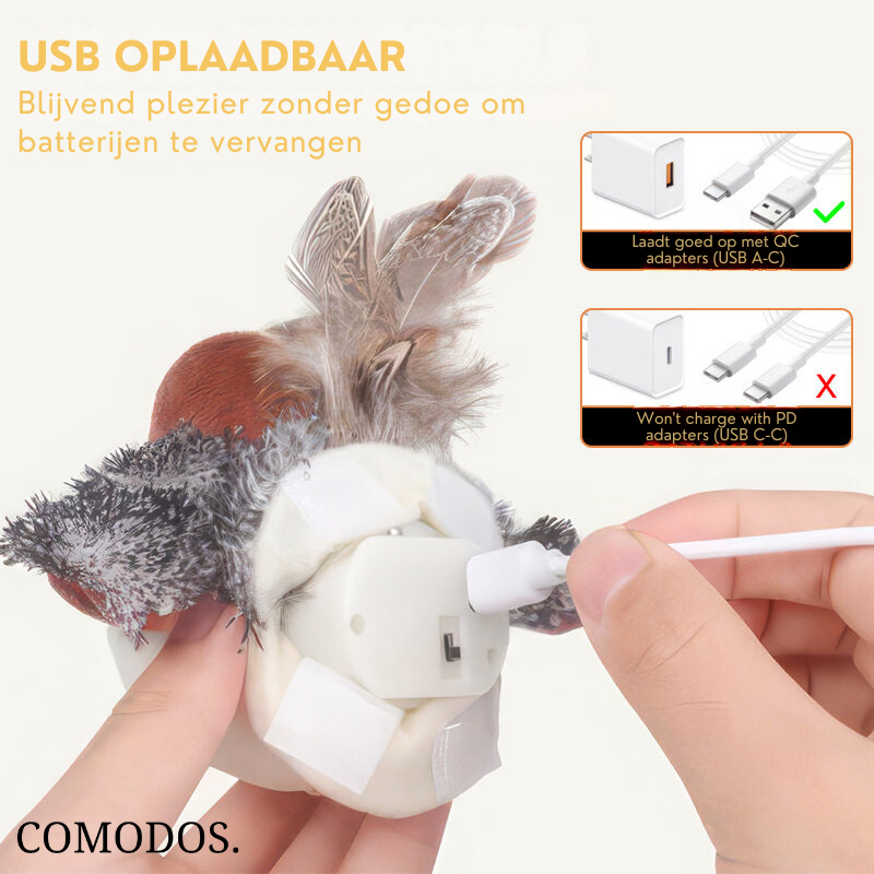 Zeg vaarwel tegen constante batterijvervangingen. Met de USB-oplaadbare functie biedt het Chirp & Chase™ Vogel Speelgoed ononderbroken plezier, zodat je kat op elk moment kan genieten van het fladderen en tjilpen.