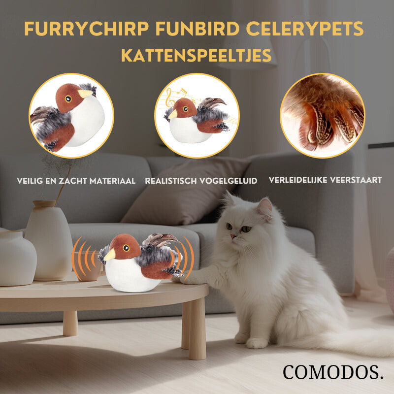 Het Chirp & Chase™ Vogel Speelgoed is ontworpen om de aandacht van je kat te trekken met levensechte tjilpgeluiden en fladderende vleugels. Elke keer dat je kat het speeltje aanraakt, komt het tot leven, waardoor een onweerstaanbare speelervaring ontstaat die een echte vogel in vlucht nabootst, waardoor je kat betrokken en volledig vermaakt blijft.