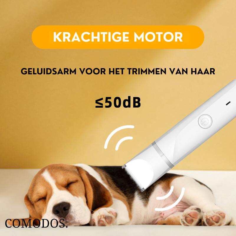 We hebben PawfectTrim™ Verzorgingsbenodigdheden ontworpen met de veiligheid van uw huisdier in gedachten. Het veiligheidsontwerp van het mes garandeert 100% bescherming tegen verwondingen, zodat zelfs beginners veilig kunnen trimmen. Bovendien raken veel huisdieren gestrest van het geluid en de trillingen van tondeuses. Daarom is onze tondeuse uitgerust met een superieure motor en fluisterstille technologie, zodat je huisdieren rustig blijven en sneller en gemakkelijker kunnen worden getrimd.
