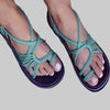 Een vrolijk paar zomersandalen die stijl en functionaliteit combineren voor een dagje strand en een ontspannen wandeling.