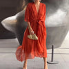 Geniet van ongeëvenaard comfort en moeiteloze elegantie met onze elegante jurk met V-hals - Thyra. Deze jurk is gemaakt om vrouwelijkheid en gratie te belichamen en belooft een luxueuze ervaring als geen ander. Ontworpen met jouw comfort in gedachten, zorgt de lossere pasvorm voor een ruime luchtstroom, zodat je je net zo goed voelt als je eruit ziet. De stijlvolle V-hals accentueert je sleutelbeenderen, terwijl de nauwsluitende taille en vloeiende rok je figuur moeiteloos aanvullen, waardoor hij perfect is voor alle lichaamstypes. Van bruiloften tot chique diners, deze veelzijdige jurk is je go-to optie voor elke gelegenheid, waardoor het een tijdloze investering voor je garderobe is. Ervaar het toppunt van comfort, luchtigheid en vooral elegantie met onze Elegante Jurk Met V-hals - Thyra.