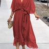 - Flatterend voor elk lichaam: Omarm je rondingen en vier je unieke schoonheid met een jurk die ontworpen is om elk lichaamstype aan te vullen. Van de diepe V-halslijn die je decolleté accentueert tot de vloeiende rok die sierlijk over je silhouet valt, deze jurk is je geheime wapen om je zelfverzekerd en stralend te voelen.