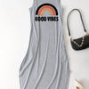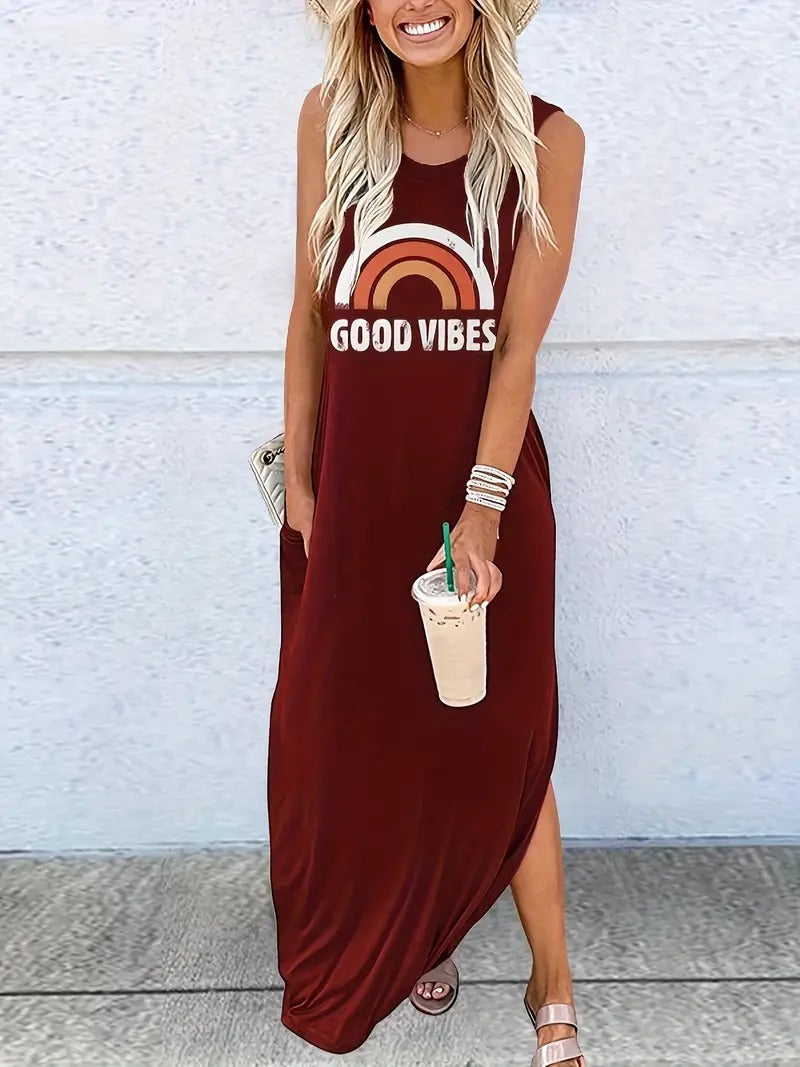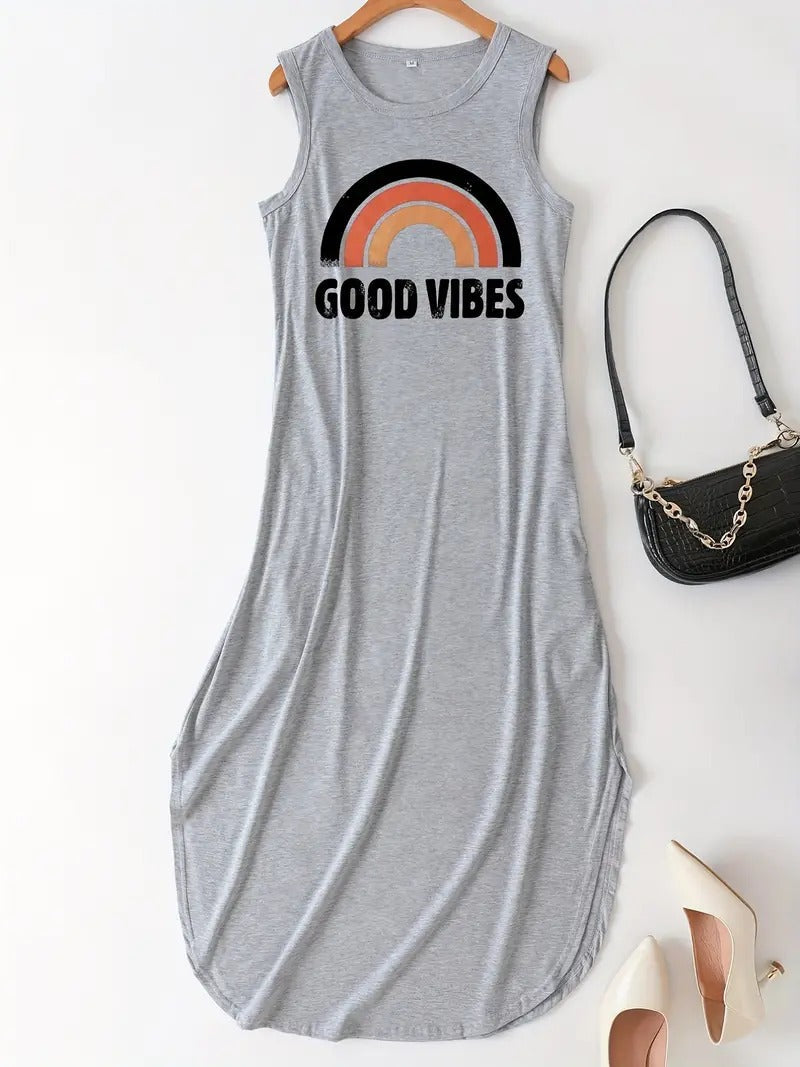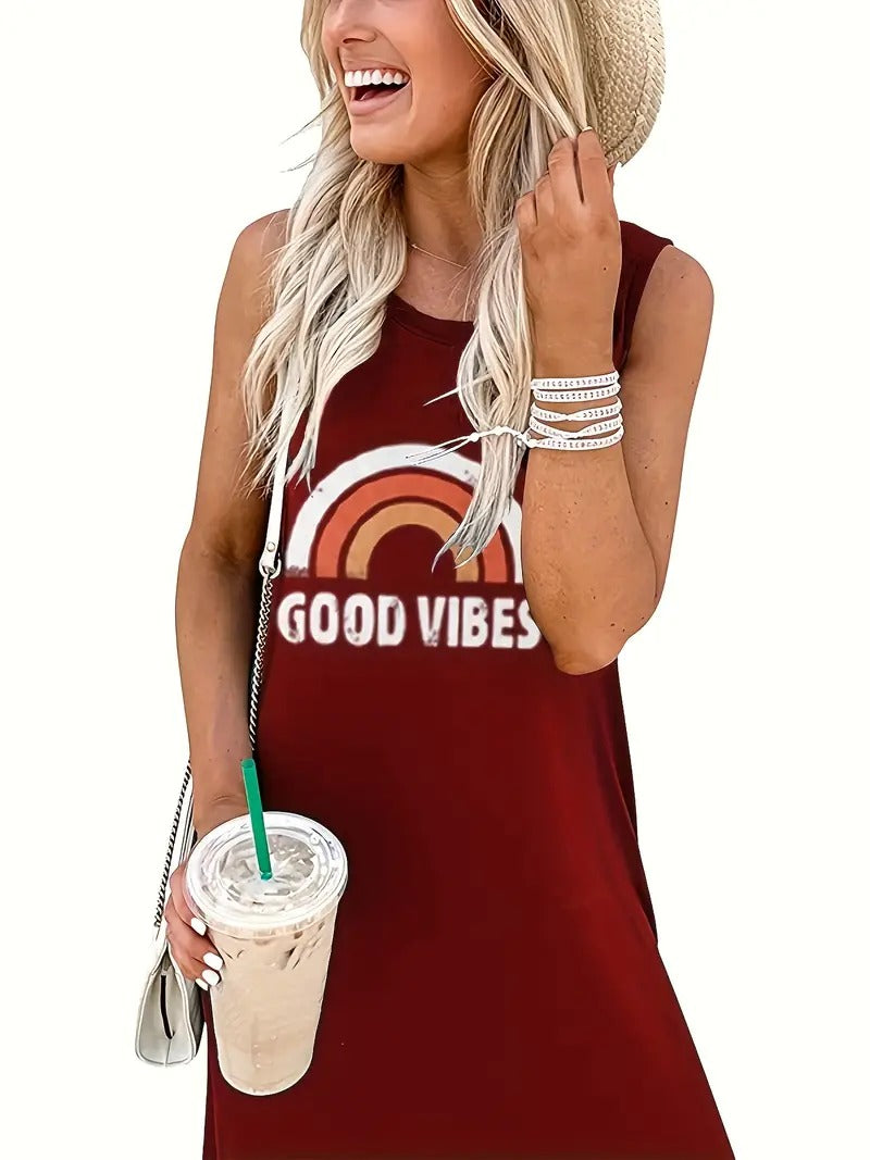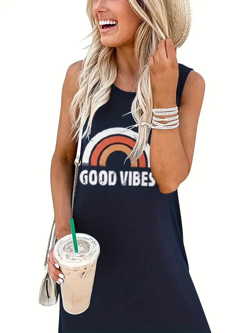 Verhoog je garderobe met de stralende charme van onze Good Vibes jurk - Anja. Deze mouwloze casual jurk met ronde hals is doordrenkt met positiviteit en gemaakt voor comfort en getuigt van een moeiteloze stijl en veelzijdigheid. Gemaakt van een luxueuze katoenmix, streelt het je huid met een zachte touch terwijl het precies de juiste hoeveelheid stretch biedt voor onbeperkte bewegingsvrijheid. De asymmetrische zoom voegt een eigentijds randje toe, perfect voor zowel casual uitjes als semi-formele aangelegenheden. Omarm het flatterende silhouet en laat het alfabetpatroon goede vibes verspreiden waar je ook gaat. Of je nu laagjes aantrekt voor koelere dagen of geniet van de warmte van de zomer, deze jurk is een tijdloze toevoeging aan je garderobe, ontworpen om je chique en comfortabel te houden in elk seizoen.