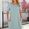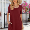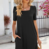 ELEGANTE VEELZIJDIGHEID: OMARM COMFORT EN STIJL MET ONZE PRACHTIGE JURK MET KORTE MOUWEN, ZAKJES EN VIERKANTE HALS - JULISSA