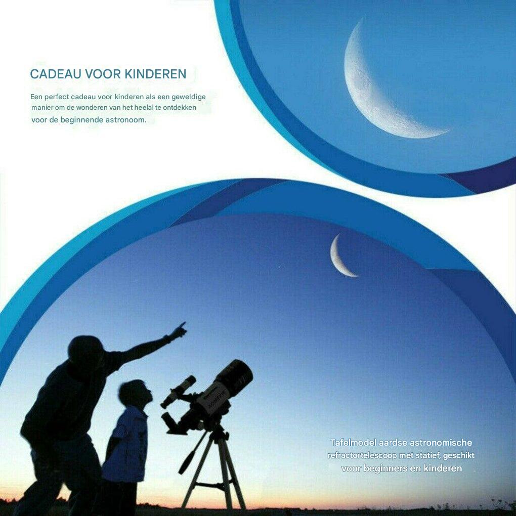Begin uw astronomische reis met deze 300/70mm refractortelescoop, ontworpen voor helderheid en gebruiksgemak. Perfect voor beginners, waarmee u de maan, planeten en sterren met indrukwekkende details kunt verkennen.