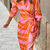 Laat jezelf stralen in onze prachtige wikkeljurk voor dames! Met zijn elegante en toch speelse ontwerp is deze jurk perfect voor elke gelegenheid, van casual uitjes tot feestelijke evenementen. De lange lengte en vrolijke kleuren voegen een vleugje flair toe aan je look, terwijl de wikkelstijl zorgt voor een flatterende pasvorm die bij alle lichaamsvormen past.