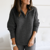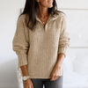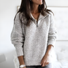 Deze damestrui met halve rits is een stijlvol maar toch casual kledingstuk, perfect om als laagje te dragen of zo. Dankzij de korte rits aan de voorkant kun je de halslijn aanpassen, terwijl het strakke silhouet goed past bij jeans, rokken en pantalons.